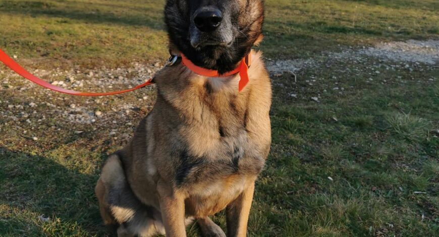 Inno, Malinois de 7 ans, ancien chien de sécurité. Réactif aux humains et chiens.