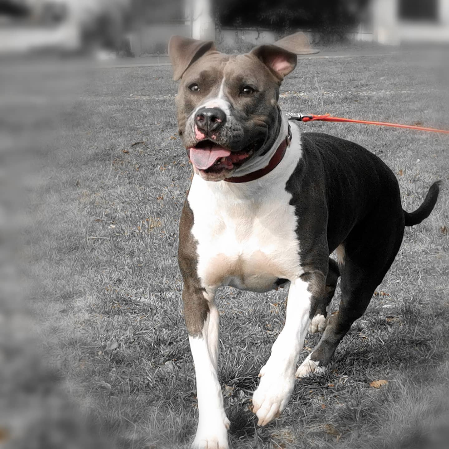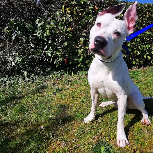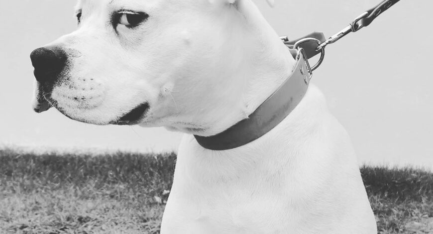Jekyll, Croisé Dogue Argentin de 6 ans. Travail sur la marche en laisse et sa petite réactivité congénères.