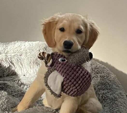 Nala, Golden Retriever de 4 mois. Travaille sur l’apprentissage des fondamentaux.